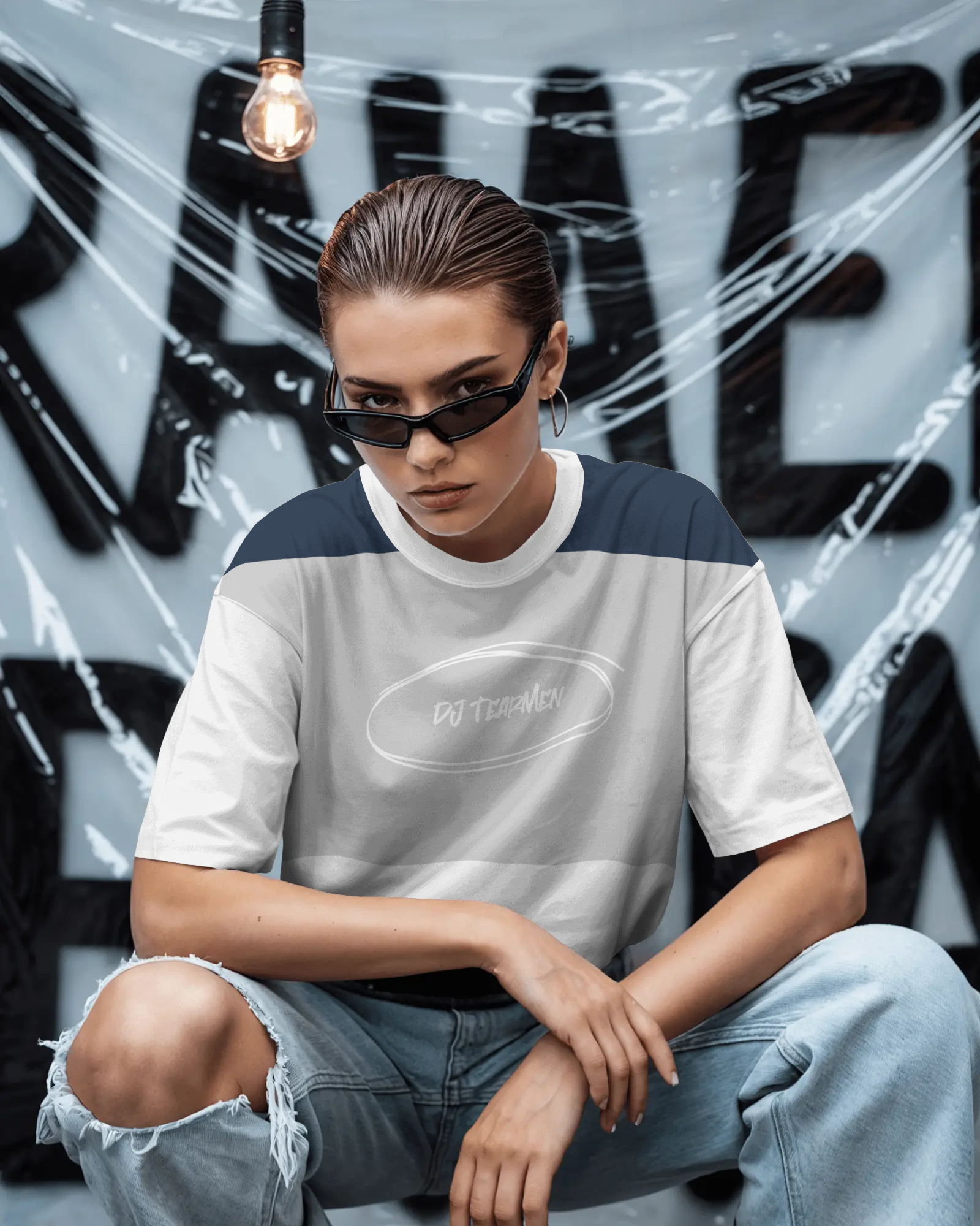 T-Shirt weiß-grau-blau #2 circle